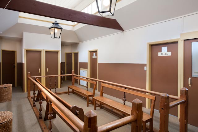 The lower part of the Stables includes the breakfast area, guest lounge, laundry, internet site, and a display highlighting the original Stable horse stalls.
